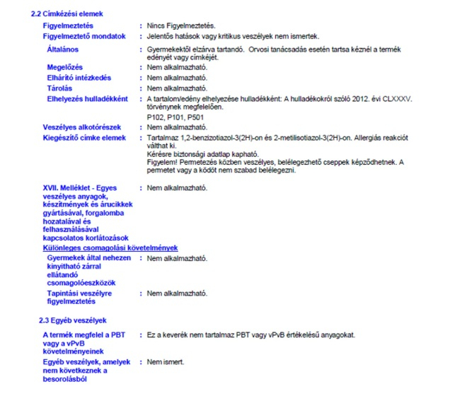 Hígíthatóság: szükség esetén vízzel (5-10%)