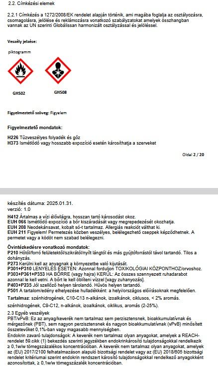 Kiadósság: 8-12 m2/liter/réteg, a felület minőségétől és a felhordás módjától függően.