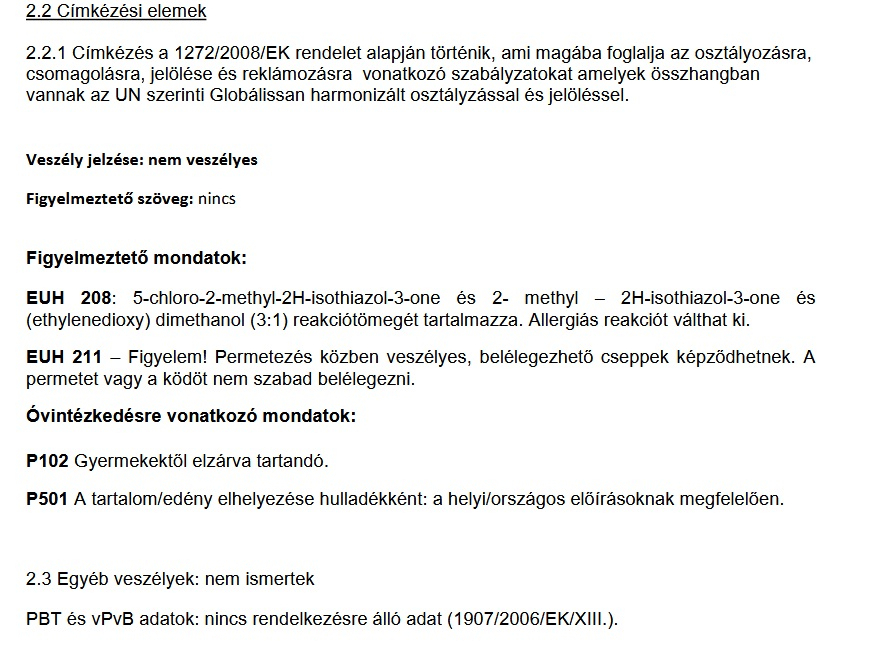 Ezen termék legfeljebb:429g/l VOC-t tartalmaz. 500g/l(2010)*.
