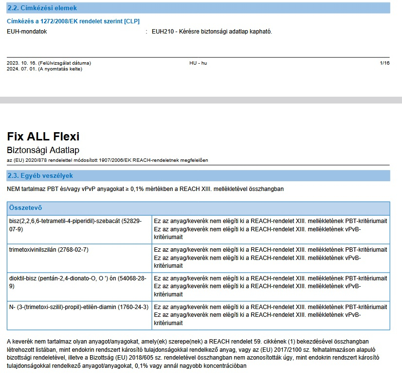 - Rugalmas ragasztó, a vibrálásnak és mozgásnak kitett anyagokhoz